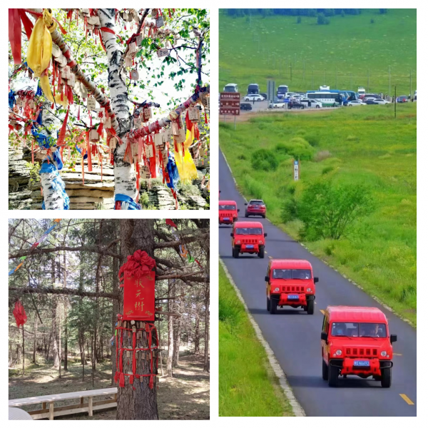 依據(jù)行程規(guī)劃,我們逐一打卡了克旗文旅集團(tuán)的樺木溝、烏蘭布統(tǒng)、達(dá)里湖、白音敖包、阿斯哈圖石林等五大經(jīng)典景區(qū),足跡遍及森林、草原、濕地、湖泊、河流、山梁、丘陵、沙地、石林、火山等多種地形。在樺木溝景區(qū),我們觀賞了極具草原風(fēng)情的紅色實(shí)景劇——大型馬術(shù)表演《英雄的鐵蹄馬》,重溫了從“草原騎兵旅”到“朱德騎兵師”那扣人心弦的成長歷程。隨后,我們深入林區(qū),觀摩了薩嶺河灘的萬馬奔騰和馬踏水花等精彩絕倫的臨場表演。其間還分組乘坐“烏蘭勇士”紅色越野車,于草原、沙地、丘陵、溝壑等不同路況中激情穿越。在御景接待中心的歡迎晚宴上,我們品嘗了令人難忘的美酒佳肴,欣賞了美輪美奐的民族服飾和高潮迭起的歌舞節(jié)目,入住體驗(yàn)了松香四溢的木屋別墅。