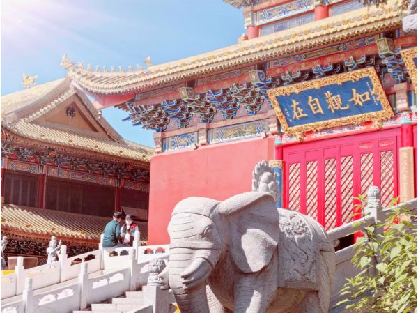 這座藏在老城區(qū)的清代漢傳佛寺,節(jié)日尾聲已無喧囂,只有檐角風鈴輕響。四合院式的布局里,金瓦紅墻映著藍天,觀音殿內(nèi)香火繚繞,