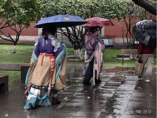 唐裝早已被雨浸透,貼在身上該有多涼?為了美,真真是拼了??粗齻兊纳碛叭谌氚唏g光影,忽然覺得這場雨來得恰好:是寒雨讓古寺更顯沉靜,也是那些不懼風雨的身影,讓千年華嚴寺的秋日多了段生動注腳,只是這生動里藏著我無法理解的執(zhí)著,倒比身上的寒意更讓人悵然。