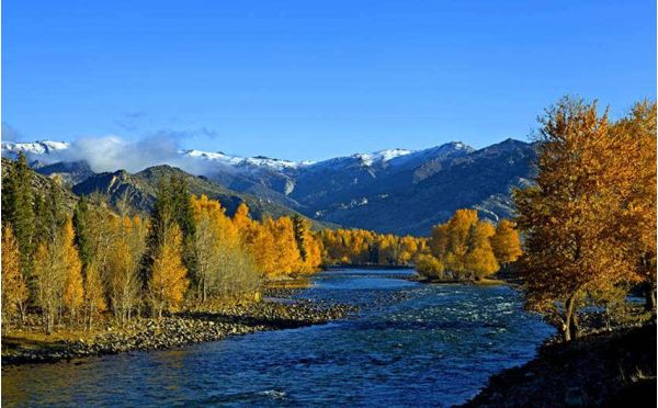 到達(dá)可可托海鎮(zhèn)后享用午餐游覽位于額爾齊斯大峽谷的【可可托海國家地質(zhì)公園】(含區(qū)間車)(游覽約120分鐘)可可托海哈薩克語意思為"綠色的叢林"。蒙古語意為"藍(lán)色的河灣"。正如其名,可可托海的水是藍(lán)色的和綠色的,這里是全國第二寒極。乘坐區(qū)間車途中參觀【白樺林】,野生樺樹林生長在額爾齊斯河凸岸河灣上,嫵媚婆娑,柔軟的枝條舒緩下垂,伴著清風(fēng)纖纖舞動,綽約若處子,曼妙無比;【神鐘山】,又稱阿米爾薩拉峰,如一口巨大座鐘立于額爾濟(jì)斯河畔,是當(dāng)?shù)卦∶竦木駡D騰。