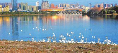 天鵝湖國家城市濕地公園,位于三門峽市東西城區(qū)之間的生態(tài)區(qū)內(nèi),現(xiàn)有面積8850畝,其中陸地6150畝,水面、灘涂2700畝,核心景區(qū)包括雙龍湖白天鵝觀賞區(qū)、陜州古城和沿黃生態(tài)林帶三部分,是一處融生態(tài)、文化和人文地理于一體的自然山水景區(qū)。