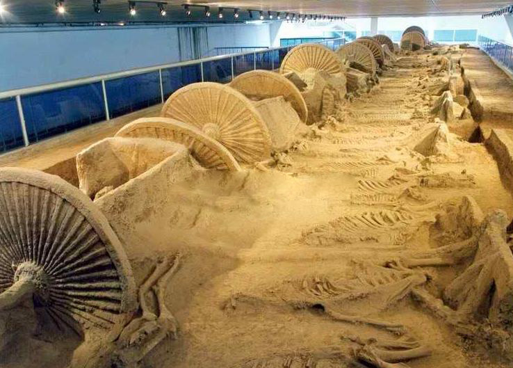 春秋殉馬坑殉戰(zhàn)車(chē)10輛,馬32匹版權(quán)所有聊城聊之旅國(guó)際旅行社有限公司,轉(zhuǎn)載必究!,規(guī)模之大,配套之齊全,馬飾之精美,為當(dāng)代中國(guó)之冠,列中國(guó)十大考古發(fā)現(xiàn)之一。古車(chē)陳列展廳陳列后李車(chē)馬坑出土的各類(lèi)車(chē)和臨淄地區(qū)出土的古代車(chē)的復(fù)原車(chē),直至中國(guó)出土的各類(lèi)古代車(chē)復(fù)原車(chē)。集中國(guó)古車(chē)研究成果之大成,薈華夏歷代車(chē)乘珍品之精萃,充分展示了中國(guó)車(chē)乘的悠久歷史和造車(chē)技術(shù)曾在世界車(chē)輛發(fā)展史上的領(lǐng)先地位。